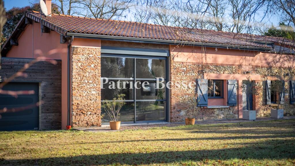 Forming a trapezium, two sides of which measure 200 metres each, the property extends over 1.9 hectares of wooded grounds. Accessible from the road via two gates, the property contains, in the following order: a workshop, the main dwelling, a two-car garage, a saltwater swimming pool with panoramic views of the spectacular Pyrenees Mountains, a wood traversed by a path and, finally, an equestrian complex composed of horseboxes, a riding arena and enclosed fields. Designed to appear like a traditional Lauragais farm, the house, which still needs some light renovation work, also contains all the technological equipment of a modern home, such as automatic gates and doors, remote alarms, an air/water heat pump and a heated swimming pool with a motorised cover for comfort and safety. Elongated in shape, the two-storey dwelling has a total floor area of 360 m², including a portion built under the eaves, i.e. 315 m² of inhabitable floor space, while a "Tropezian-style" roof terrace extends on from the parental suite to the south. Given that the sale concerns the current SCI [property management company], which owns the premises, it is therefore recommended that potential future buyers anticipate the advantages and obligations related to the management of this legal entity.