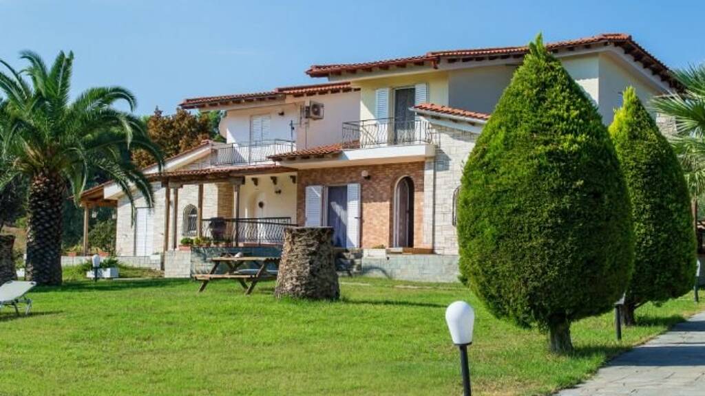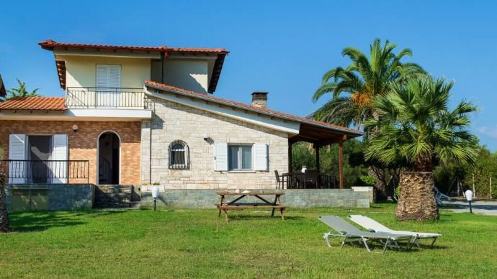Beautiful,bright maisonette,150 m²,in Kassandra,Halkidiki,a few meters away from the beach,with a southwestern orientation.The renovated property is outside the village and it is surrounded by a 1850 m² private garden.The maisonette is split in three levels, consisted of a semi-basement with a big bedroom,a ground floor with a spacious living room,a bedroom and a wc and the first floor with two bedrooms and a bathroom.The property,also,has barbecue,pvc joinery,security door,big balconies and fitted closets.The maisonette is fully equipped and furnished.