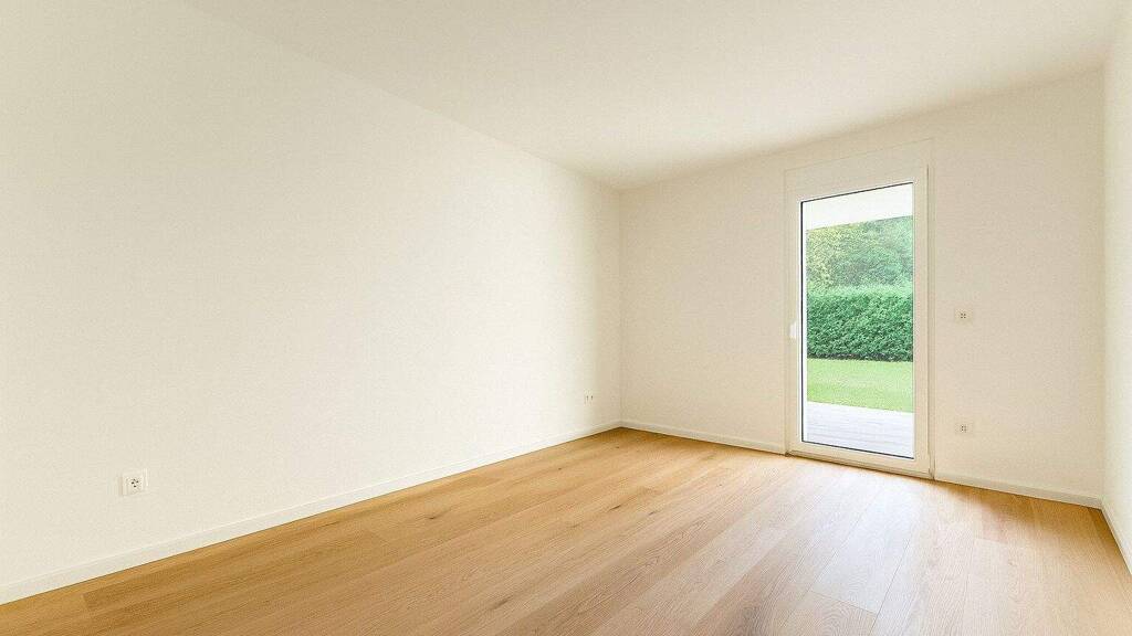 Das Badezimmer ist mit eleganter Keramik ausgestattet und verfügt über eine bodengleiche Dusche. Das WC ist separat. Der Vorraum bietet ausreichend Platz für Garderobe und Stauraum. Besonders hervorzuheben ist die großzügige, südlich ausgerichtete Terrasse mit über 22?m² sowie der Eigengarten mit knapp 63?m², der exklusiv zur Einheit gehört.