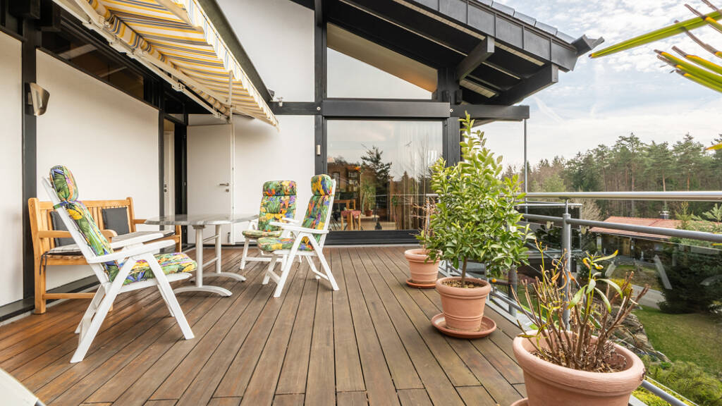 Das Highlight: Riesige Fensterflächen vom Boden bis zur Decke, diese großen Glasflächen lassen Sie drinnen im Haus direkt an der Natur draußen teilhaben. So erleben Sie die Jahreszeiten hautnah mit, im Winter erwärmen die Sonnenstrahlen die Räume - im Sommer lassen sich die großen Glasflächen durch die verbauten elektrischen Jalousien beschatten.