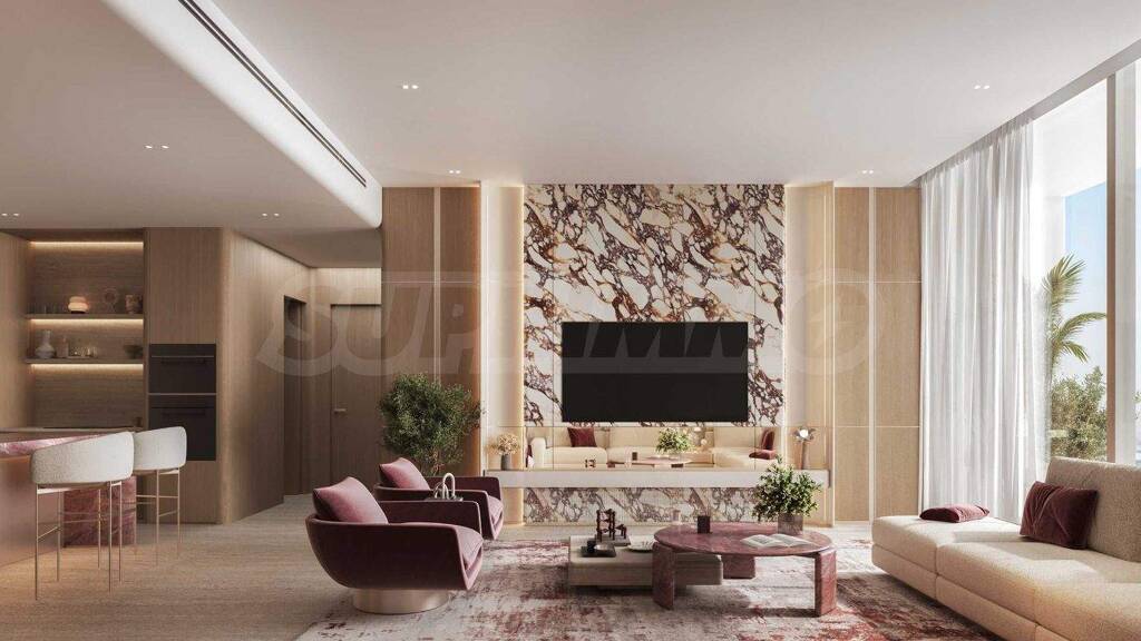 Die Wohnung wird bezugsfertig angeboten, inklusive Eingangs- und Innentüren, Bodenbelägen und Beleuchtung sowie einer ausgestatteten Küche und einem Badezimmer. Für die Innenausstattung wurden hochwertige Materialien verwendet ? weißer Marmor, Eichenholz, edle Bronzedetails und dekorative Wandelemente mit Spiegeln, die dem Interieur einen eleganten und modernen Charakter verleihen.