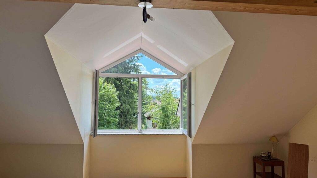 Im ersten Obergeschoss und im Elternbereich finden Sie Echtholz-Parkett, das für einen warmen und natürlichen Charakter sorgt. Alle Fenster sind doppelt verglast und mit Rollläden versehen, sodass Energieeffizienz und Sicherheit gleichermaßen gewährleistet sind. Die sonnige Südterrasse mit angrenzendem Gartenanteil lädt zu entspannten Stunden im Freien ein. Es gibt zudem zwei Aussenstellplätze.