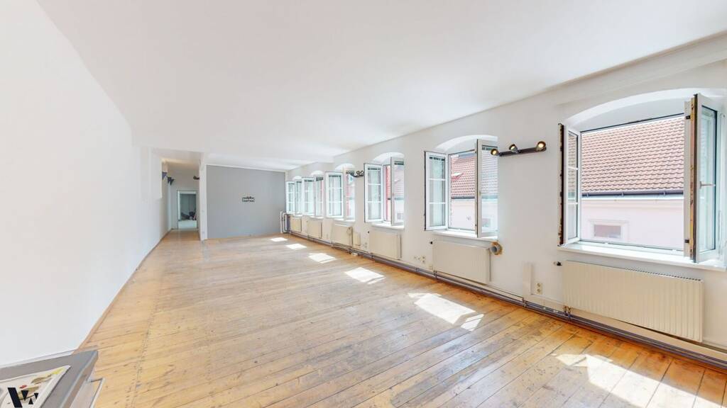 Allgemeine Informationen: Dieses einmalige Hofgebäude in Backsteinbauweise mitten in Wien-Neubau bietet Ihnen zahlreiche Gestaltungsmöglichkeiten. Über 4 Etagen erstreckt sich eine Gesamtnutzfläche von ca. 690 m2. Im Erdgeschoß befindet sich eine Garage mit 9 KFZ-Stellplätzen. Weiters bietet der Keller ca. 170 m2 Lagerfläche sowie zwei klimatisierte Serverräume und ist über einen Lastenaufzug erreichbar. Hochparterre und der 1.Stock verfügen jeweils über eine Terrasse mit einer Fläche von ca. 66 m2 und die sonnige Dachterrasse bietet Ihnen ca. 120 m2 Fläche.