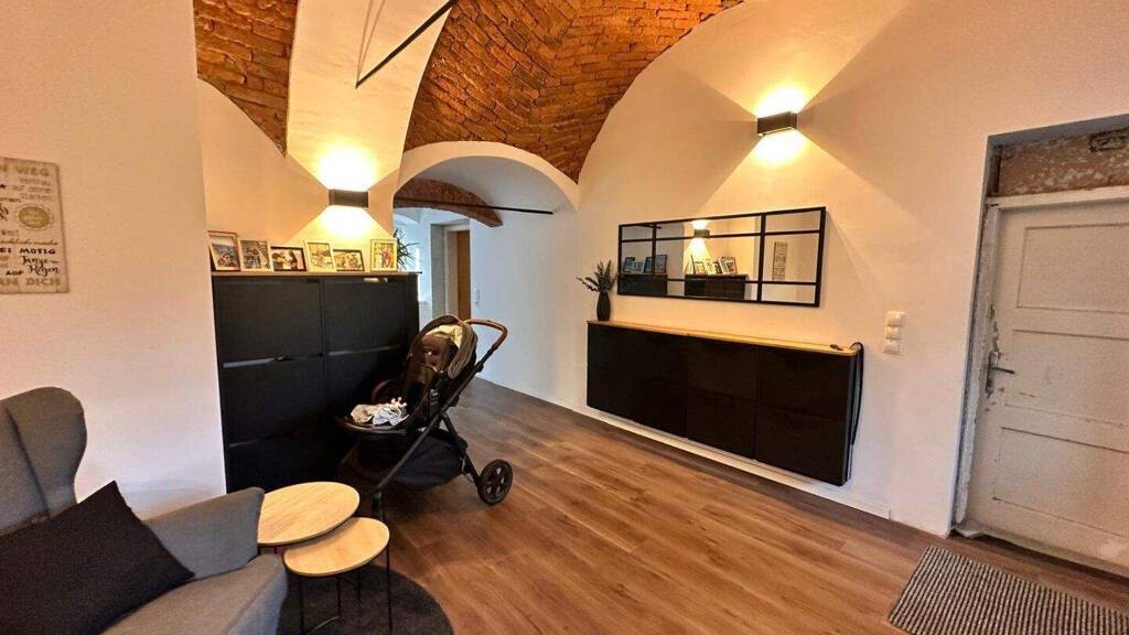 Bereits beim Betreten des Hauses empfängt Sie ein großzügiger Eingangsbereich mit romantischem Gewölbeeingang, der dem Gebäude eine besondere und einladende Atmosphäre verleiht.