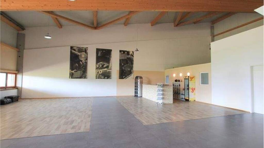 - 2011 in Niedrigenergiebauweise erstellt - großer Innenraum (bisherige Nutzung: repräsentativer Showroom mit Theke, Schulung, Lager und Werkstattbereich) - Empfangsbereich - Sanitär/Büro optional - freitragenden Dachkonstruktion: gesamter Innenraum kann neu konzipiert und ggf. noch erweitert werden - Hallenhöhe 5,75 - 9,40 m