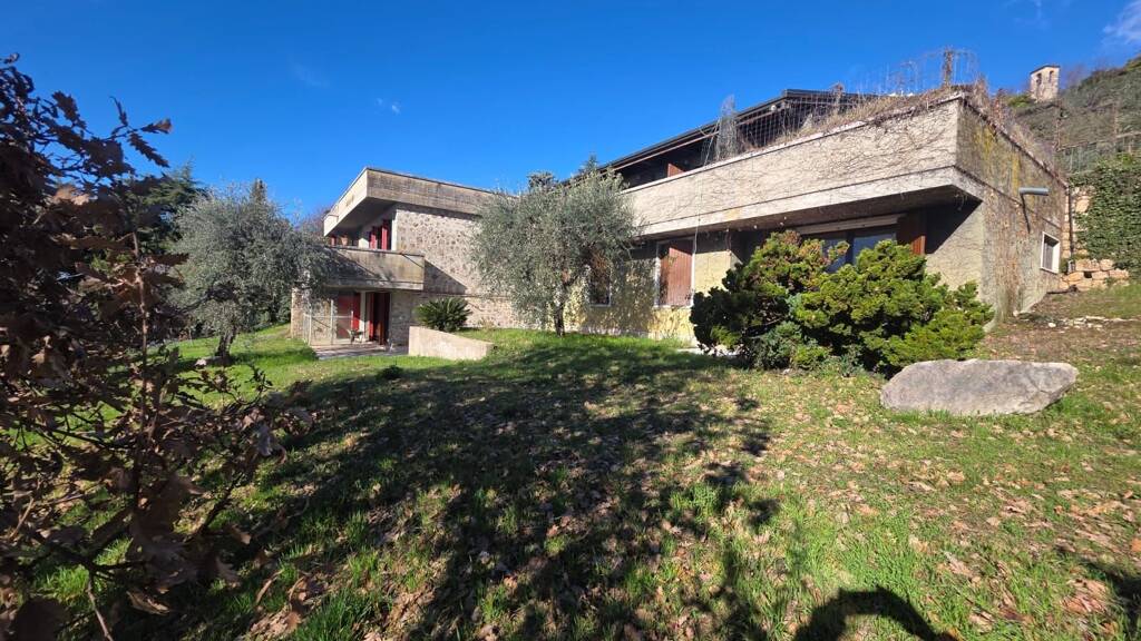 In bester Panoramablick-Lage in einer der begehrtesten Wohngegenden im Hinterland des Gardasees, in der hügeligen Urbanisation von San Michele, befindet sich diese zeitlos moderne Architekten - Villa aus den 80iger Jahren.