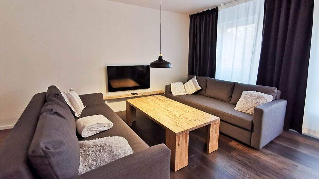The modern and barrier-free 2-room apartment in Bergheimer Straße 21 in Heidelberg is fully equipped and has a living space of about 60 sqm and a balcony. In the combined living-dining area you will find a generously furnished sofa corner with TV for you and your guests. In the adjoining kitchenette you will find everything you need - from an oven, stove, refrigerator and dishwasher to a kettle, coffee machine, toaster and cutlery. You will also find a kitchen table for dining for 6 people. In the bedroom you will find a large double bed with bed linen and covers and a wardrobe. In the bathroom you will find a shower, a bathtub and a hair dryer - we also provide towels. If you wish to wash or clean, the apartment also has a washing machine/dryer as well as an iron, ironing board and cleaning utensils.