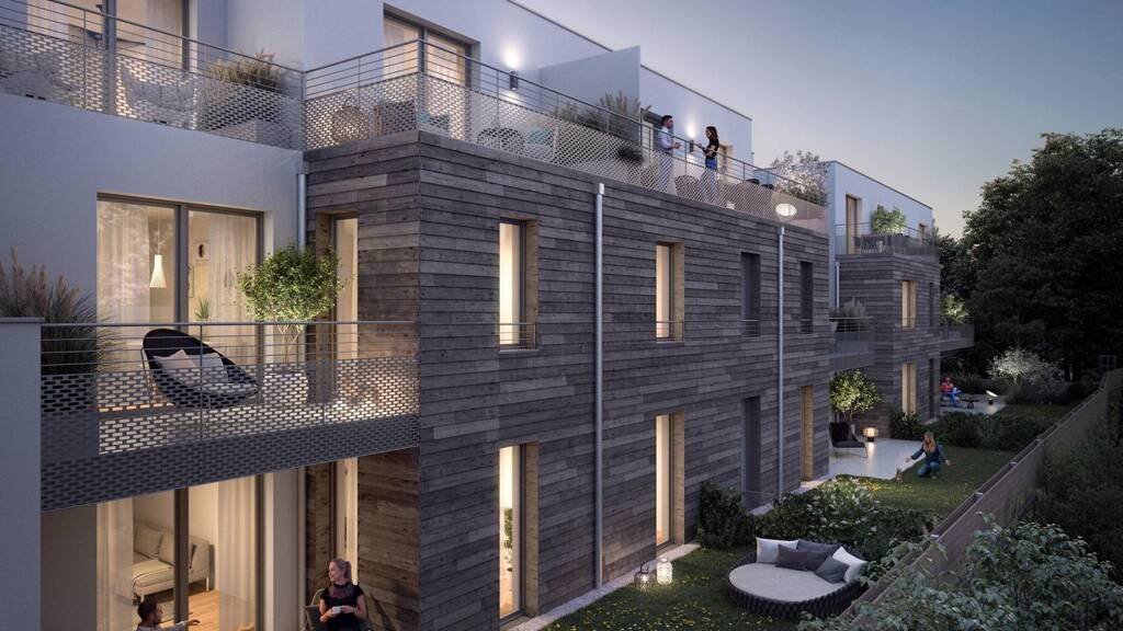 Wohnen im Weinviertel - naturnah & stadtnah zugleich Quality Living von Raiffeisen Wohnbau verbindet die Ruhe des Weinviertels mit der schnellen Anbindung an Wien. Auf einem Grundstück von rund 3.900 m², in unmittelbarer Nähe zum Bahnhof, entstanden zwei moderne Wohnprojekte mit insgesamt 46 Eigentumswohnungen sowie einer Arztpraxis mit separatem Eingang. Die Wohnungen überzeugen durch großzügige Freiflächen wie Balkone, Terrassen oder Eigengärten. Dank des vielfältigen Wohnungsmixes aus 2-, 3- und 4-Zimmer-Einheiten finden Familien, Paare und Singles hier ihr ideales Zuhause. Ein grüner Gemeinschaftsgarten mit altem Kastanienbestand sorgt für Schatten und Erholung im Sommer. Lärchenholzakzente an der Fassade und eine hochwertige Ausstattung - darunter Echtholzparkett, Fußbodenheizung, Raffstores bzw. Rollläden im Erdgeschoss und eine Klimaanlagenvorbereitung im Dachgeschoss - schaffen ein stilvolles und komfortables Wohnambiente.