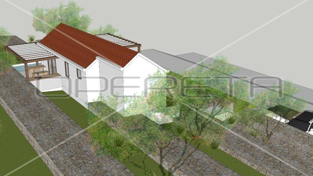 Auf dem Grundstück befindet sich ein altes Steinhaus von 51 m2, das seit über 60 Jahren dort steht. Obwohl das Haus eine vollständige Renovierung benötigt, hat es bereits eine Hausnummer und eine Nutzungsgenehmigung, und gemäß den gesetzlichen Bestimmungen muss die ursprüngliche Struktur erhalten bleiben, wodurch das kulturelle Erbe bewahrt wird. Der Grundriss des Hauses beträgt 12,68 m x 4,10 m, mit einer Höhe von 1,90 m, und das Haus selbst ist einstöckig und freistehend.