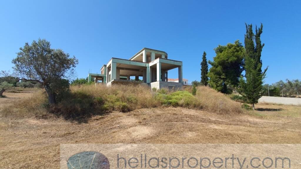 In wunderschöner Lage und weniger als 900 Meter vom Sandstrand von Petrothalassa entfernt befindet sich ein im Rohbau befindendes Einfamilienhaus von 238 m² auf einem Grundstück von 2.260 Quadratmetern.