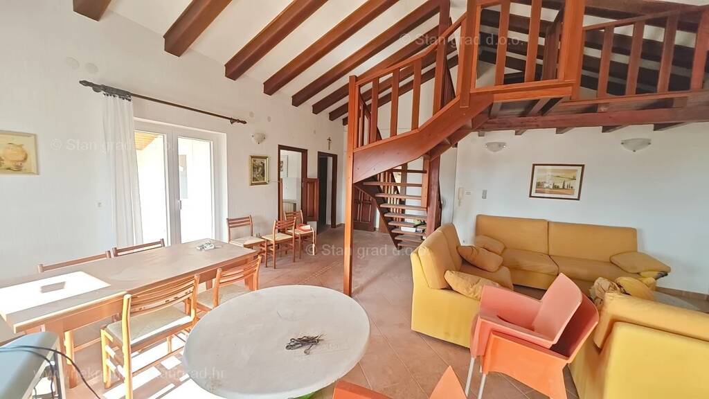 Wir bieten ein sehr hochwertiges Apartment für einen touristischen Aufenthalt an der nördlichen Adria auf dem meist begehrten Kvarner-Reiseziel, der Insel Krk. Die genannte Wohnung befindet sich in einer hochwertigen und urbanisierten Lage unweit des Meeres und des Zentrums der Stadt Krk. In Anbetracht der Art der Immobilie handelt es sich um eine geräumige einstöckige Wohnung. In einem hochwertigen Gebäude befindet sich die Wohnung im 1. Stock. Die Gesamtfläche dieser Wohnung beträgt 105 m2. Der genannte Bereich umfasst eine Eingangshalle, ein Wohnzimmer und eine Küche mit Esszimmer, 2 Schlafzimmer, ein Badezimmer und drei Terrassen. Außerdem ist zu beachten, dass die Wohnung über eine Galerie verfügt, die nach den Wünschen des neuen Eigentümers gestaltet werden kann. Der Innenbereich der Immobilie ist sehr gepflegt und komplett mit allen notwendigen technischen Geräten und hochwertigen Möbeln ausgestattet. Das Eigentum an dieser Wohnung beinhaltet auch die Möglichkeit, den gemeinsamen Teil des Hofes des betreffenden Gebäudes zu nutzen, wo sich ein Swimmingpool und eine Liegewiese befinden. Zu dieser Wohnung gehört ein Parkplatz zum Abstellen von zwei Autos. Darüber hinaus ist anzumerken, dass die Wohnung so ausgerichtet ist, dass sie einen schönen Blick auf die schöne Küstenlandschaft und die unmittelbare Umgebung der Siedlung bietet. Diese Wohnung ist Eigentum einer natürlichen Person, daher ist der Käufer verpflichtet, bei der Eigentumsübertragung auf seinen Namen eine Umsatzsteuer in Höhe von 3 % zu zahlen. Der Immobilienverkäufer garantiert eine schnelle Übertragung der Eigentumsrechte sowie eine ordnungsgemäße Eigentums- und technische Dokumentation. Besuchen Sie uns auf der Insel Krk und stellen Sie sicher, dass Ihre Zufriedenheit für uns an erster Stelle steht. Wenn Sie uns Ihr Vertrauen schenken, hilft Ihnen die Agentur Stan Grad Immobilien gerne dabei, die Eigentumsrechte an dieser Immobilie und die Rechnung für ihre Versorgungsanschlüsse und Dienstleistungen auf Ihren Namen zu übertragen.