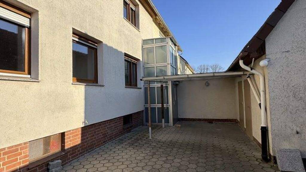 Die Immobilie ist voll unterkellert und verfügt zusätzlich über ein Nebengebäude, welches mit einem Wintergarten ergänzt wurde. Darüber hinaus wird das Außenensemble durch einen kleinen überdachten Freisitz, der in seiner Bauart einem Carport ähnelt, sowie eine Garage, die sich ebenfalls auf dem Grundstück befindet komplettiert. Es ist ein bisher noch nicht ausgebauter Dachboden vorhanden.