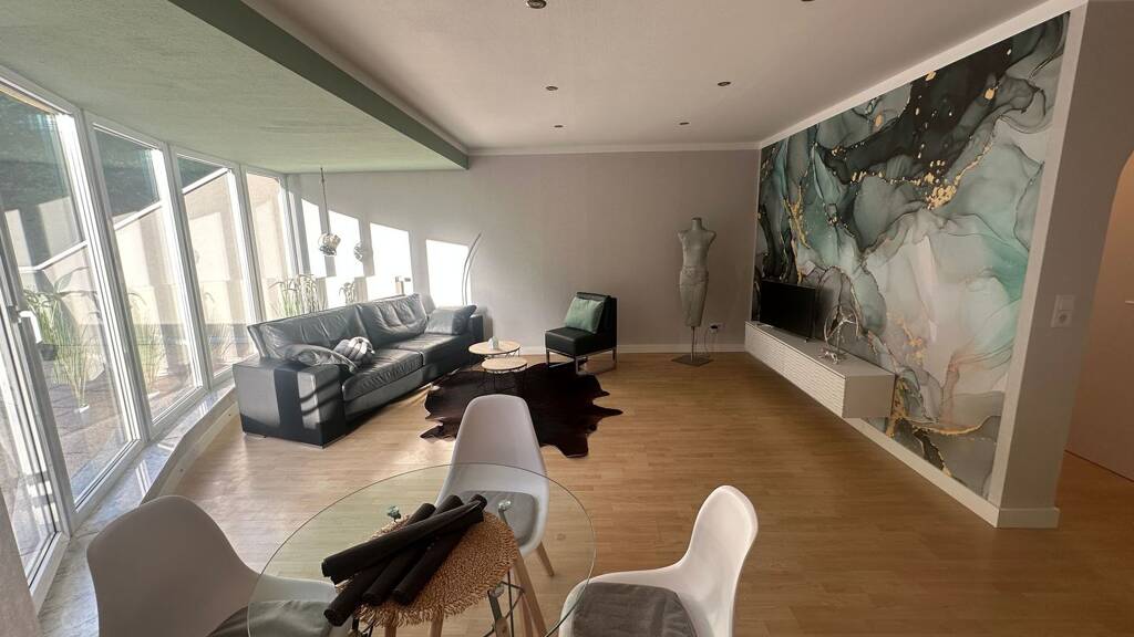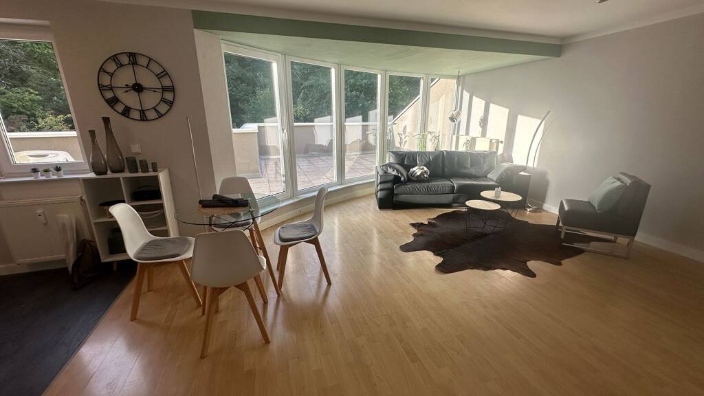 Objektbeschreibung Diese exclusive Penthouse-Wohnung wurde mit viel Liebe zum Detail möbliert. Sie befindet sich in einem ruhigen gepflegten Mehrfamilienhaus im Saarbrücker Stadtteil Dudweiler-Süd.