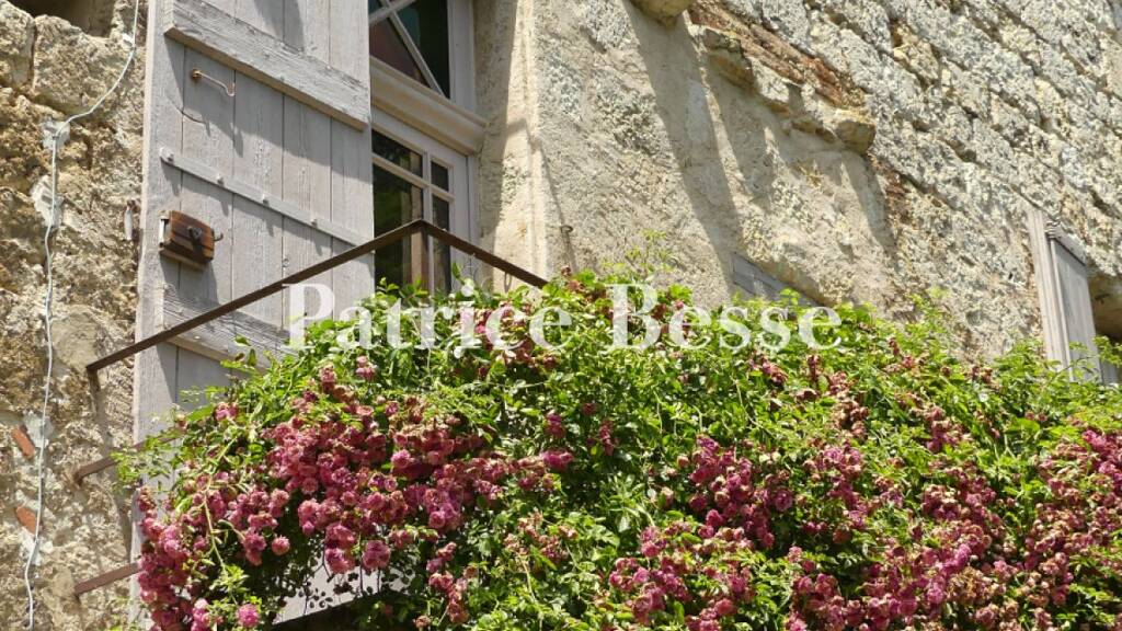 The second building has a single-storey 18th-century main section made of dressed stone that faces a court, which is partly covered. A four-floor medieval tower with a loft adjoins this section. This edifice has a wooden terrace on its south side and a walled garden that extends eastwards and southwards. On the narrow street on the south side, there is a separate stone building that adjoins two other properties. It houses a vast ground-floor garage and an upstairs space with sloping attic ceilings that could be converted. The latter space can be reached from the garden via the wooden terrace.