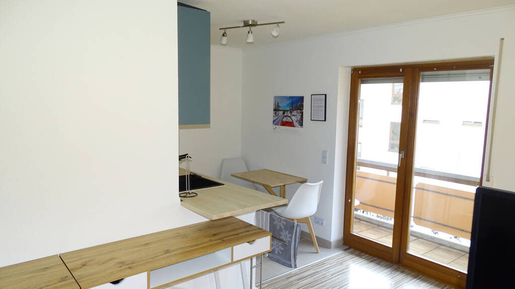 Sehr gemütliche und ruhige 1-Zimmer-Wohnung mit großem Balkon zum 01.07.2026 zu vermieten. Die Wohnung ist möbliert mit Bett (inklusive Bettwäsche), Kommode, Schreibtisch sowie einer komplett eingerichteten Einbauküche. Im Eingangsbereich gibt es genügend Platz für eine Garderobe. Vom Wohnzimmer aus gelangen Sie zum großen Balkon mit schönem Freiblick. Das Badezimmer ist mit Dusche, Waschbecken und WC ausgestattet. Im Waschraum gibt es eine eigene Waschmaschine. Der Mietpreis setzt sich wie folgt zusammen: