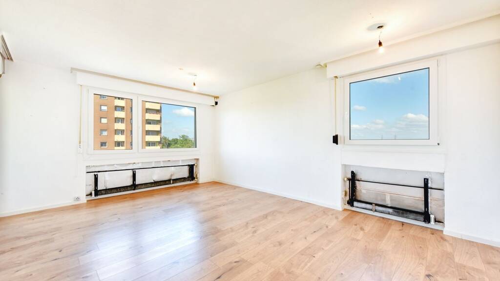 Diese leerstehende und modernisierungsbedürftige 3-Zimmer-Wohnung mit West-Balkon befindet sich im 8. Obergeschoss eines Hochhauses mit 57 Wohneinheiten.