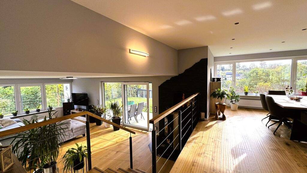 Auf ca. 162 m² Wohnfläche entfalten sich sechs vielseitig nutzbare Zimmer. Ob lebendiges Familienleben, konzentriertes Homeoffice oder individuelle Rückzugsorte - hier findet jeder seinen Platz. Der offene Wohn- und Essbereich über zwei Ebenen bildet das Herzstück des Hauses: lichtdurchflutet, großzügig und mit einem stilvollen Holzkamin, der besonders in den Abendstunden eine unvergleichliche Wohlfühlstimmung schafft.