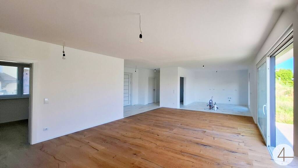Genießen Sie gemeinsame Mahlzeiten am großzügigen Esstisch und erleben Sie unvergessliche Momente in stilvollem Ambiente. Der nahtlose Übergang vom Wohnbereich zur Küche fördert die Kommunikation und schafft eine behagliche Atmosphäre. Durch den Ausgang auf die Terrasse mitten im Raum, haben Sie eine natürliche Erweiterung vom Wohnzimmer in den Außenbereich. Die Terrasse lädt dazu ein, laue Sommerabende im Freien zu genießen. Ob beim Frühstücken in der Sonne, beim Grillen mit Freunden oder beim Entspannen mit einem guten Buch - dieser Außenbereich wird schnell zu Ihrem Lieblingsplatz.