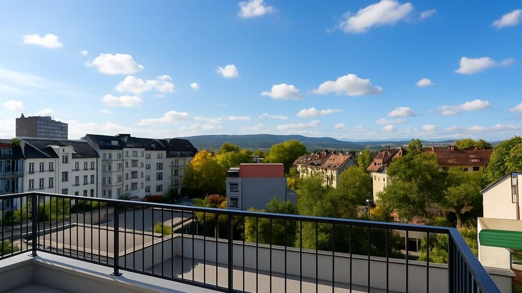 Die Dachstudiowohnung bietet einen einzigartigen Blick bis zum Herkules. Ein Schlafzimmer, ein Badezimmer en Suite, ausgestattet mit bodentiefer Dusche, ein separates Gäste-WC, der Wohn- und Essbereich mit offener Küche und großen Balkon bieten ein ideales und komfortables Wohnkonzept für den modernen Singlehaushalt.