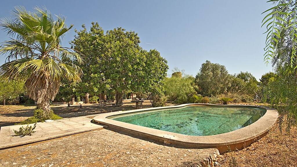 Diese Finca mit viel Charakter befindet sich am Ortsrand nur 5 Fußminuten entfernt von der Stadt Santanyi in ruhiger und idyllischer Lage. Das gepflegte Grundstück mit seinen 3.411 m² Land befindet sich am Ende einer kleinen Sackgasse. In Haupt- und Nebengebäuden hat die Finca eine bebaute Fläche von 388 m². Das Haupthaus bietet im Erdgeschoß ein Wohnzimmer, Küche, 2 Schlafzimmer, Ankleidezimmer und 2 Badezimmer. Das Obergeschoß ist zum Ausbau vorbereitet. In dem Nebengebäude sind eine Sommerküche, Garage sowie eine Werkstatt untergebracht. Die Finca ist bewohnbar, aber modernisierungsbedürftig, besitzt einen eigenen Brunnen und ist an die öffentliche Stromversorgung angeschlossen. Das Haupthaus ist mit einer Ölzentralheizung und teilweise Klimaanlage ausgestattet. Alle Aufbauten sind legal. Ein 62 m² großer Pool, ein großer Wintergarten sowie ein Fischteich runden das Bild dieser schönen Finca ab.