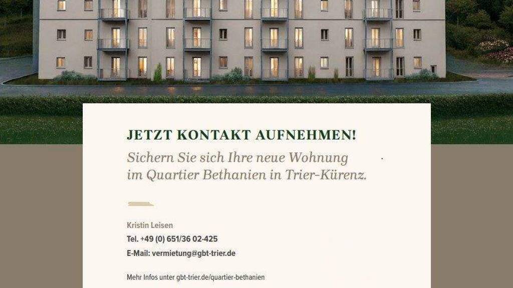 m Ortsteil Trier-Kürenz erwartet Sie eine einzigartige Wohnlage: Ruhig, grün, in Innenstadt-Nähe und mit direktem Zugang zum historischen Klosterareal und seinem idyllischen Innenhof. Das Projekt befindet sich im beliebten Stadtteil Kürenz mit rund 10.000 Einwohnern. Die Lage am Waldrand, umgeben von Weinbergen und dem Kürenzer Schlosspark, vermittelt ein ruhiges, grünes Wohngefühl und das bei direkter Stadtnähe. Ein besonderes Highlight ist das historische Klosterareal mit seinem schönen Innenhof, der den Bewohnern als nutzbarer, grüner Rückzugsort zur Verfügung steht. Der Fernblick ins Tal unterstreicht die besondere Wohnqualität des Quartiers. Die Anbindung an Bus u. Bahn ist optimal und wichtige Einrichtungen wie Schulen, Supermärkte und Nahversorgung sind bequem und schnell erreichbar.