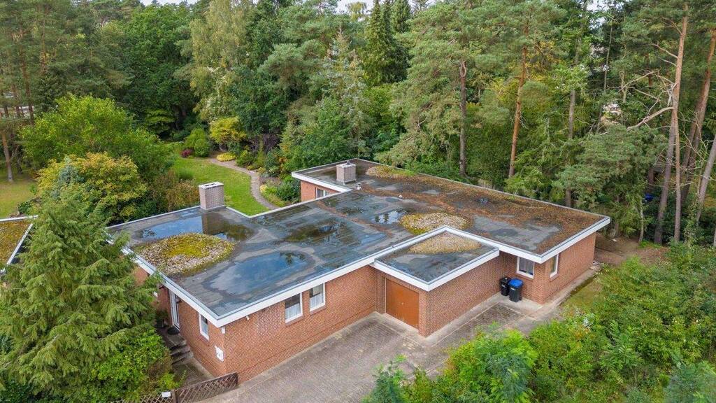 Der hier angebotene und großzügige Bungalow befindet sich auf einem traumhaften Grundstück mitten im Grünen. Durch die Sackgassenendlage und der ruhigen Wohngegend ist dieses Haus optimal, um sich als Familie niederzulassen und den Traum von einem Eigenheim zu verwirklichen. Im Inneren finden Sie großzügig geschnittene Räumlichkeiten, die keine Wünsche übriglassen. Im Jahr 1973 wurde der Bungalow erbaut und befindet sich auch heute in einem äußerst gepflegten Zustand. Eine Vaillant Gas-Heizung aus dem Jahr 2009 sorgt für eine gute Beheizung der Räumlichkeiten. Aufgrund des besonderen Grundrisses bietet das Haus eine sehr einladende und angenehme Atmosphäre. Der große Eingangsbereich lässt Sie sich direkt willkommen fühlen. Von hier geht zur linken Seite ein großzügiges Zimmer ab, welches sich als Wohnbereich, oder zum Beispiel auch als Büro anbietet. Es gibt einen offenen Kamin, der für gemütliche Stunden sorgen kann und eine Schiebetür zur Gartenseite. Zur rechten Seite geht die Küche mit Einbauküche ab. Weiterführend gelangen Sie in den mit rund 52 m² sehr großzügigen Wohn- und Essbereich. Hier sorgen große Schiebetüren dafür, dass der gesamte Raum herrlich mit Tageslicht durchflutet wird und somit sehr hell und freundlich ist. Das Wohnzimmer entpuppt sich somit als Herzstück des Hauses und bietet Zugang zum gut bewachsenen Garten. Wenn Sie durch den Wohnbereich hindurchgehen, gelangen Sie in den hinteren Teil des Bungalows. Direkt vom Wohnzimmer geht hier die Diele ab, von der eines der Schlafzimmer sowie das separate WC und ein länglicher Flur abgehen. Über den Flur erreichen Sie zwei weitere Schlafzimmer, das große Badezimmer und über eine Treppe den Keller. Die Kellerräume bieten genügend Platz zum Lagern und würden sich ebenfalls auch als Hobbyräume eignen. Zur Erholung befindet sich im Keller eine Sauna, die für erholsame Stunden genutzt werden kann. Fahrzeuge können Sie bequem in der Einfahrt oder in der Garage parken.