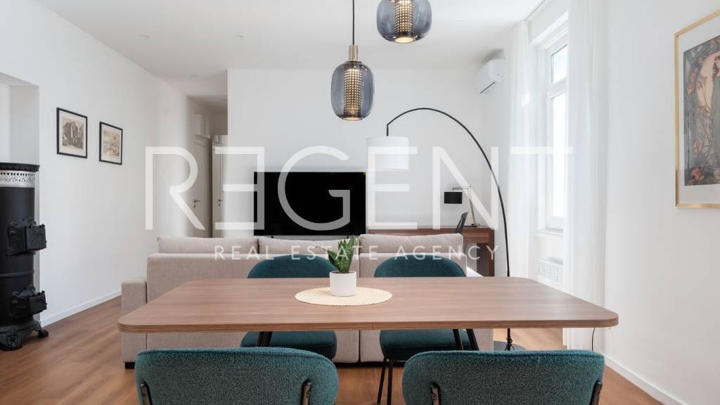 Die Wohnung befindet sich im ersten Stock eines kleineren Wohngebäudes mit insgesamt zwei Etagen, in einer sehr ruhigen Lage in der Nähe des Parkwaldes Marjan und des Stadtzentrums. Es handelt sich um eine komplett renovierte Ein-Zimmer-Wohnung mit einer Fläche von 58 m², die für einen langfristigen Zeitraum von mindestens 12 Monaten vermietet wird. Die Lage ermöglicht einen einfachen Zugang zu allen wichtigen Einrichtungen, während der nächste Strand nur zehn Gehminuten entfernt ist. Der Innenraum ist mit dem Schwerpunkt auf Funktionalität und Komfort eingerichtet. Die Wohnung besteht aus einem Eingangsbereich mit Einbauschrank, einer neuen Küche mit Ess- und Wohnbereich, einem Schlafzimmer mit Doppelbett, einem Badezimmer und einem Balkon. Hohe Decken verstärken zusätzlich das Gefühl von Geräumigkeit und Helligkeit. Die Wohnung ist mit komplett neuen Haushaltsgeräten ausgestattet, darunter ein Kühlschrank mit Gefrierfach, ein Backofen, ein Kochfeld, eine Dunstabzugshaube, ein Geschirrspüler und eine Waschmaschine-Trockner-Kombination. Im Wohnzimmer und Schlafzimmer sind Klimaanlagen installiert, während eine zusätzliche elektrische Heizung im Wohnbereich und im Badezimmer vorhanden ist. Die Immobilie ist an Glasfaserinternet angeschlossen. Diese Immobilie ist eine gute Wahl für eine oder zwei Personen, die eine ruhige, gepflegte und langfristige Miete in einem attraktiven Teil der Stadt suchen. Rauchen und Haustiere sind nicht erlaubt. Für weitere Informationen und Besichtigungen können Sie sich gerne melden.