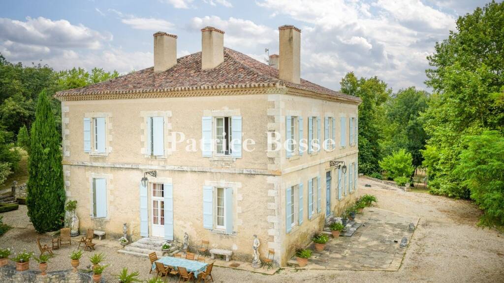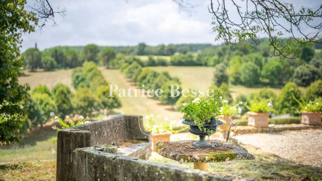 A small country lane that snakes through fields and groves leads to the estate. An electric wrought-iron gate, framed between tall stone pillars, takes you onto a long driveway lined with towering cypress trees. The whole property enjoys privacy at the top of a hill that overlooks a small valley. The estate covers around 30 hectares, including 15 hectares of landscaped parkland with Mediterranean plants and trees, as well as terraces and dry-stone retaining walls that evoke Tuscany. There are also two orchards, one of which is walled. At a lower level and set back, there is a swimming pool with a stone-tiled poolside area. The pool is 14 metres long and 7 metres wide. A flight of stone steps stretches up to large terraces upon which the grand Gascon house stands proudly, extended with a wing for guests in former annexes on the north side. A rectangular outbuilding with a caretaker's dwelling, workshops, a garage and a vast loft stands by a lane to a parking area. At the bottom of the plot, there is an agricultural storage building in which you can store tools for maintaining the parkland.