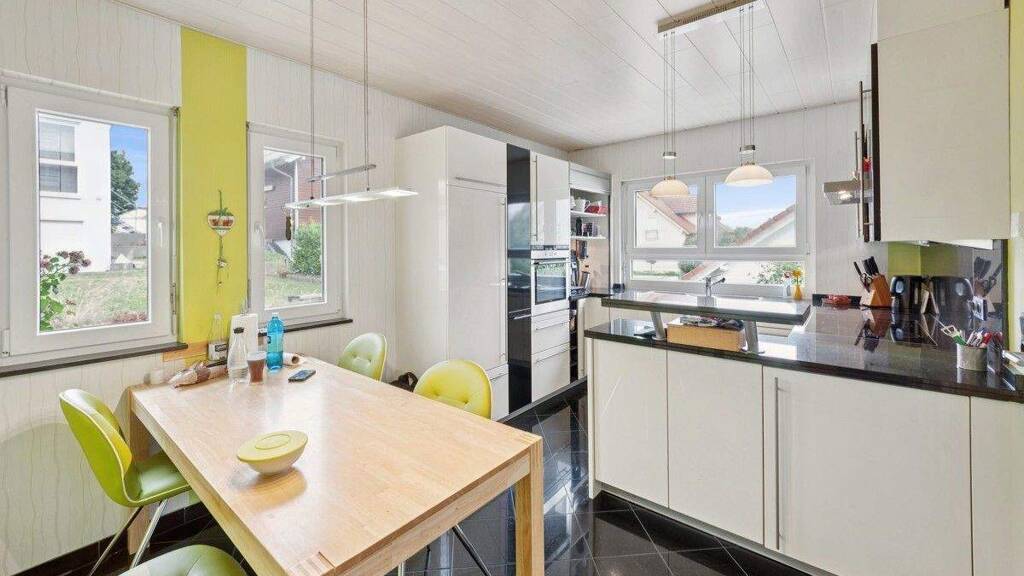 Dieses großzügige Einfamilienhaus bietet ideale Voraussetzungen für Ihre Familie mit bis zu vier Kindern. Herzstück des Hauses ist die sonnige Südterrasse mit herrlichem Blick über das Dorf bis ins grüne Ronneburger Hügelland - perfekt für entspannte Stunden im Freien. Die Wohnfläche verteilt sich auf mehrere Etagen mit insgesamt drei modernen Badezimmern: ein Elternbad mit bodengleicher Wellnessdusche (2015), ein Kinderbad mit Dusche und Regenbogen-Whirlpool sowie ein weiteres Bad mit ebenerdiger Dusche. Das Elternschlafzimmer verfügt über einen begehbaren Kleiderschrank. Ein besonderes Ausstattungsmerkmal ist die hochwertige Markenküche mit doppelter Granitarbeitsplatte, flächenbündigem Induktionsfeld und hochgebautem Backofen mit Pyrolysefunktion. Ein Glasfaseranschluss (FTTH), ein Kaminanschluss mit Ofenvorbereitung, eine neue Hauseingangstür mit Fingerabdrucksensor, eine Trinkwasserenthärtungsanlage sowie ein Wäscheabwurfschacht unterstreichen die hochwertige Ausstattung. Beheizt wird das Haus über eine Fußbodenheizung mit umweltfreundlicher Erdwärmepumpe (neuer Kompressor 2023). Fenster mit einem exzellenten U-Wert von 0,34 sowie vollständig gedämmte Wände tragen zur großen Energieeffizienz der Immobilie bei. Die letzten Renovierungen umfassen unter anderem die Fassade (ca. 2014), das Elternbad und den Carport (beide ca. 2015). Als Bodenbeläge finden sich stilvolles Feinsteinzeug, Parkett und Laminat. Das Haus verfügt über einen Carport sowie einen zusätzlichen Außenstellplatz.
