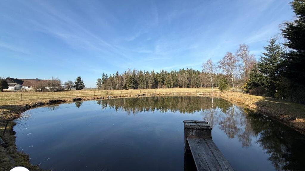 Exklusiver Fischteich | Einfamilienhaus-Rohbau mit riesigem Grund in absoluter Ruhelage | Grünblick