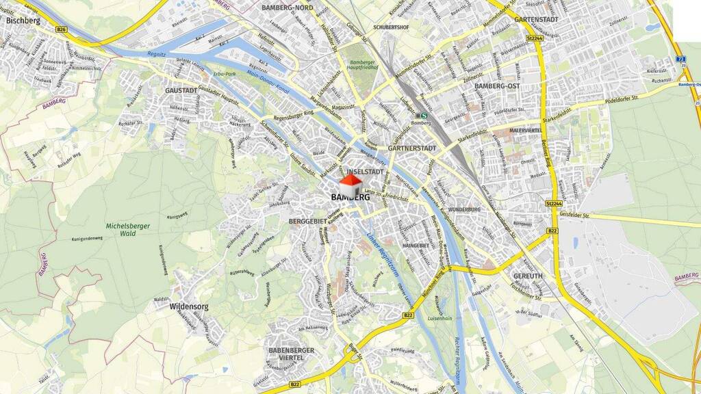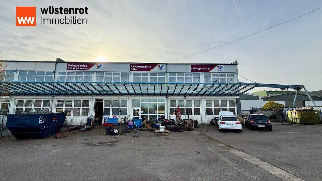 Die Gewerbeeinheit befindet sich in der Coburger Straße 47 im nördlichen Bamberg. Das Umfeld ist von Handwerks- und Gewerbebetrieben geprägt und eignet sich ideal für Werkstatt- und Lagernutzung. Durch die Anbindung an die B 4 und die nahe A 73 ist der Standort verkehrsgünstig gelegen. Buslinien in der Umgebung sorgen zusätzlich für eine gute Erreichbarkeit. Einkaufsmöglichkeiten und Servicebetriebe befinden sich ebenfalls in unmittelbarer Nähe.