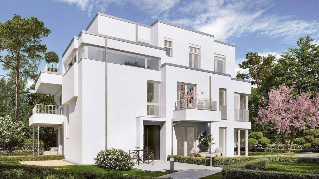 In einer eleganten weißen VILLA MIT NUR 3 LUXUSWOHNUNGEN IM GRÜNEN erwartet Sie ein wahres Wohnrefugium.
