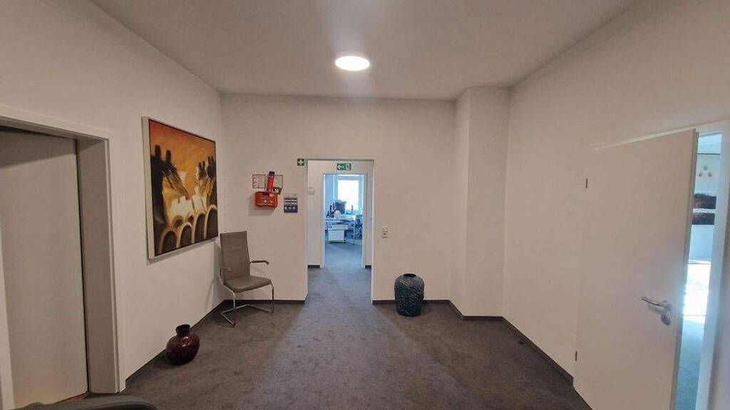 Zur Vermietung steht eine helle und funktional geschnittene Büroeinheit im 1. Obergeschoss, die ideale Voraussetzungen für ein angenehmes und effizientes Arbeiten bietet. Die Fläche umfasst insgesamt vier einzelne Büroräume, darunter ein großzügiges Großraumbüro, das sich hervorragend für Teamarbeit oder mehrere Arbeitsplätze eignet. Die weiteren Büroräume können flexibel als Einzel- oder Doppelbüros, Besprechungsräume oder Rückzugsorte genutzt werden.