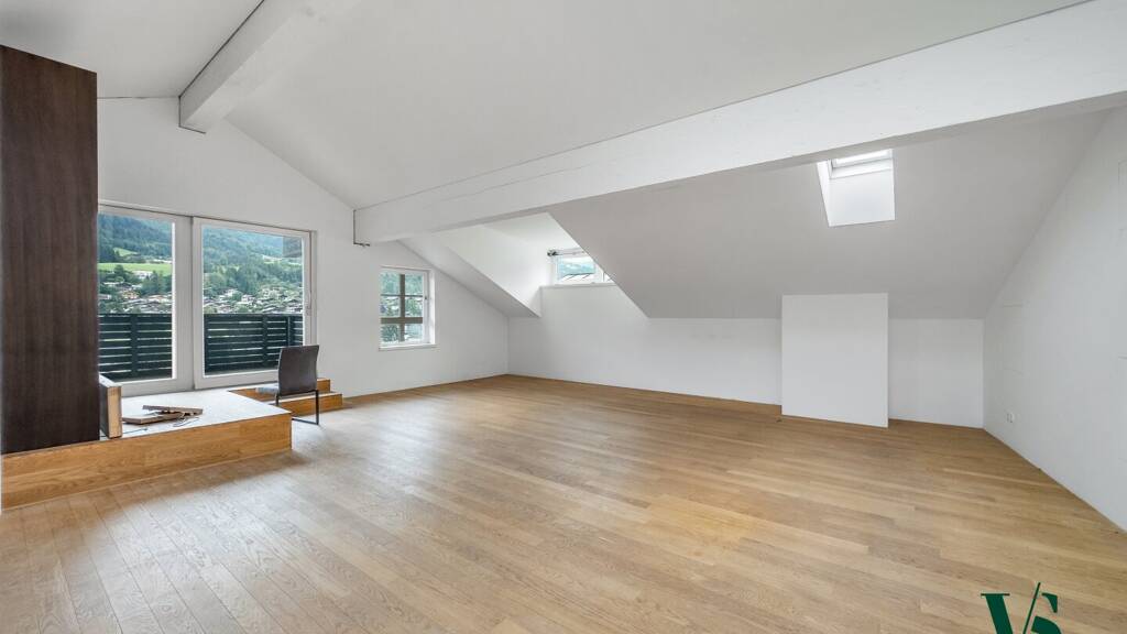 Der Lichtdurchflutete und hohe Loft besticht über einen atemberaubenden Blick über die Dächer Kitzbühels und auf das Kitzbühler Horn.