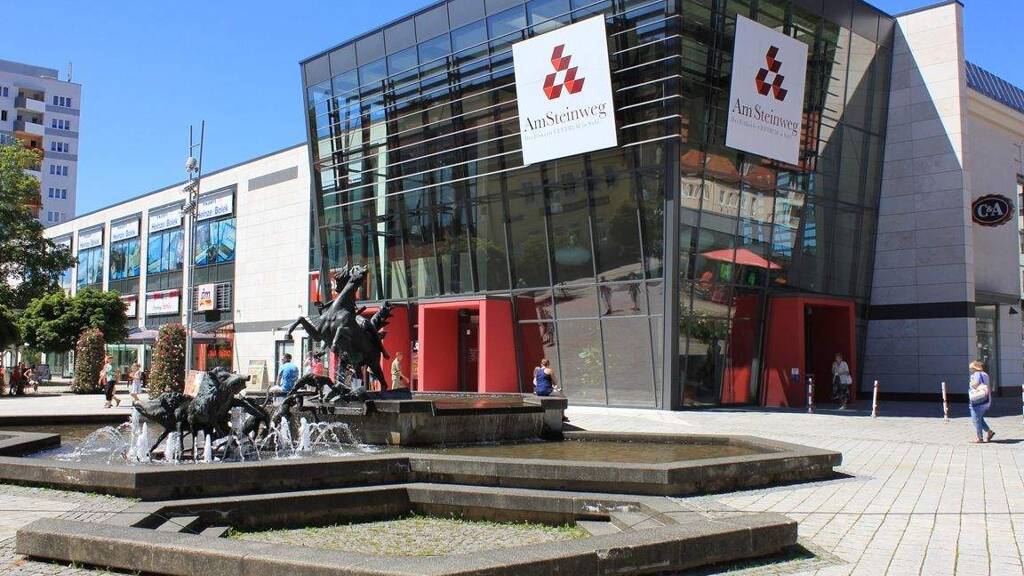 - Fußgängerzone Steinweg, Markt, zwei Einkaufshäuser,