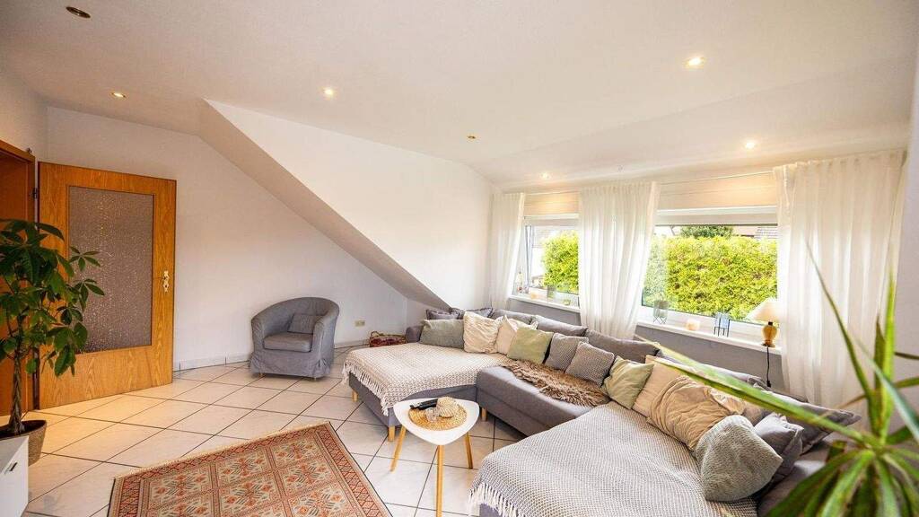 Die Dachgeschosswohnung liegt etwa 1,9 km südlich vom Stadtzentrum Sunderns entfernt im Stadtteil Seidfeld und bietet eine gute Verkehrsanbindung durch eine Bushaltestelle in 300 m Entfernung und eine Autobahnauffahrt in 11,5 km Entfernung. In unmittelbarer Nähe finden Sie verschiedene Einkaufsmöglichkeiten, wie Supermärkte, Bäckereien und ein Einkaufszentrum, sowie Bildungseinrichtungen, Ärzte und Apotheken. Für Erholung gibt es einen Wald und den Sorpesee in der Nähe. Die Umgebung bietet somit eine gute Balance zwischen Ruhe, Erholung und Infrastruktur, ideal für den täglichen Bedarf und die Freizeit.