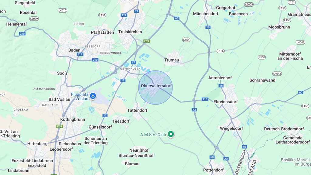 Das Verkaufsobjekt befindet sich in einer von Einfamilienhäusern geprägten Seitengasse in der Nähe des bekannten Golfclubs Fontana in absoluter Ruhelage in Oberwaltersdorf. Die niederösterreichische Marktgemeinde liegt ca. 25 km südlich von Wien im Bezirk Baden und verfügt über eine gehobene Lebensqualität und sehr gute Infrastruktur. Sämtliche Einrichtungen des täglichen Bedarfs und die Nähe zur Nahversorgung sind gegeben.