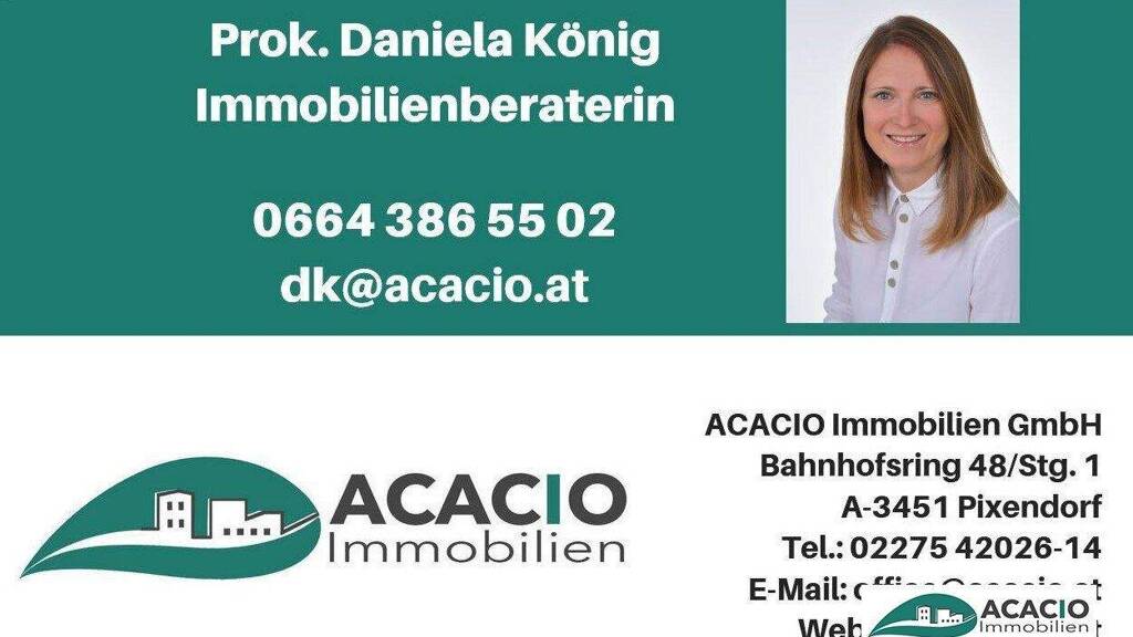 Gerne steht Frau Daniela König für weitere Informationen unter der Tele.nr.: 0664/ 386 55 02 [tel:06643865502] oder unter der e-mail: dk@acacio.at zur Verfügung.