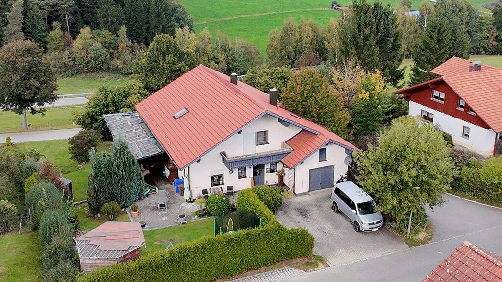 Dieses Zweifamilienhaus befindet sich in Rinchnach, einer Gemeinde im Bayerischen Wald, und bietet einen unverbaubaren Weitblick auf die malerische Umgebung. Die ruhige und familienfreundliche Atmosphäre der Region macht sie zu einem idealen Wohnort.