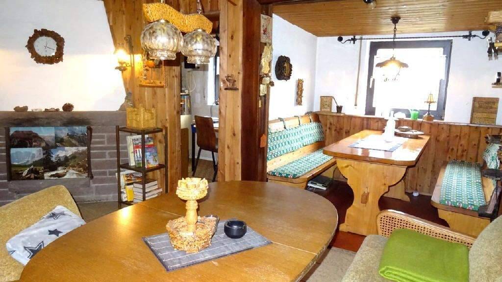 Im Kellergeschoss befinden sich neben dem liebevoll ausgebauten Partyraum noch ein Arbeitsraum, drei Vorratskeller und die WaschkĂĽche. AuĂźerdem weist die Immobilie noch zwei Garagen, einen Holzschuppen, eine kleine Werkstatt und eine Gartenlaube mit AuĂźenkamin auf.