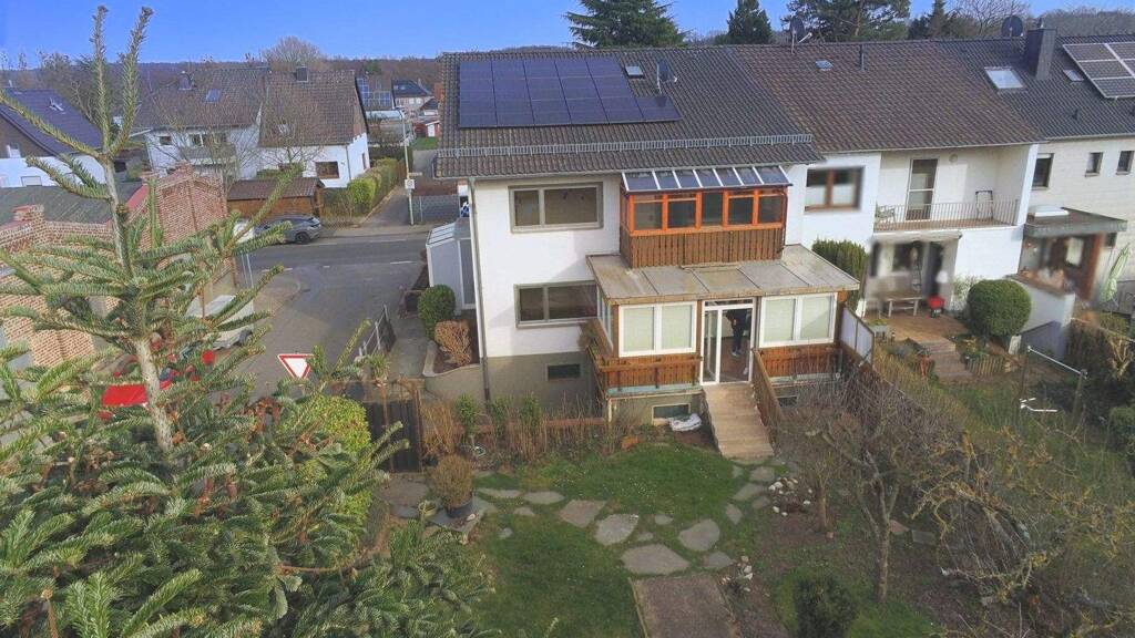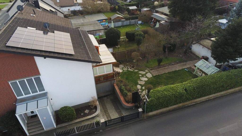 Besonderes Highlight ist die moderne Wärmepumpenheizung sowie die integrierte Photovoltaikanlage auf dem Dach, die für effiziente, nachhaltige Energieversorgung sorgen. Das große, ansprechende Grundstück verfügt über zwei Garagen und bietet ausreichend Raum für Garten und Freizeit.