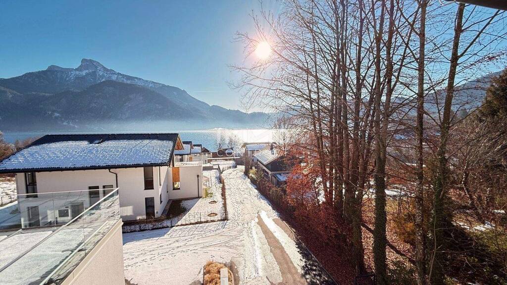 Fünf moderne Häuser mit insgesamt 12 Eigentumswohnungen und einer luxuriösen Villa schaffen ein außergewöhnliches Wohnambiente in traumhafter Lage. Dank der leichten Hanglage genießen alle Einheiten einen einzigartigen Ausblick auf den Mondsee und das Bergpanorama.