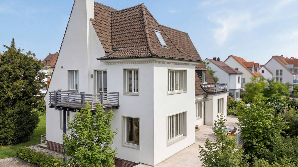 Die Villa erstreckt sich über drei Etagen und umfasst insgesamt sieben Räume, zwei Bäder sowie zwei zusätzliche WCs. Gleichzeitig ermöglicht die vorhandene Struktur auch eine attraktive Hybridnutzung, bei der Wohnen und Arbeiten unter einem Dach kombiniert werden können.