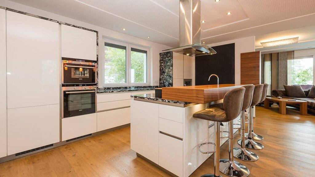 Die Wärmeversorgung erfolgt umweltfreundlich über Fernwärme, kombiniert mit einer modernen Fußbodenheizung in allen Einheiten. Alle eingebauten Möbel verbleiben im Haus und unterstreichen das durchdachte Wohnkonzept sowie die hochwertige Ausstattung. Auf allen Ebenen sorgt eine Wohnraumlüftung mit vorgeschaltetem Klimagerät für angenehme Temperaturen im Sommer wie im Winter. Eine am Dach installierte Solaranlage unterstützt zudem die umweltfreundliche Warmwasserbereitung.