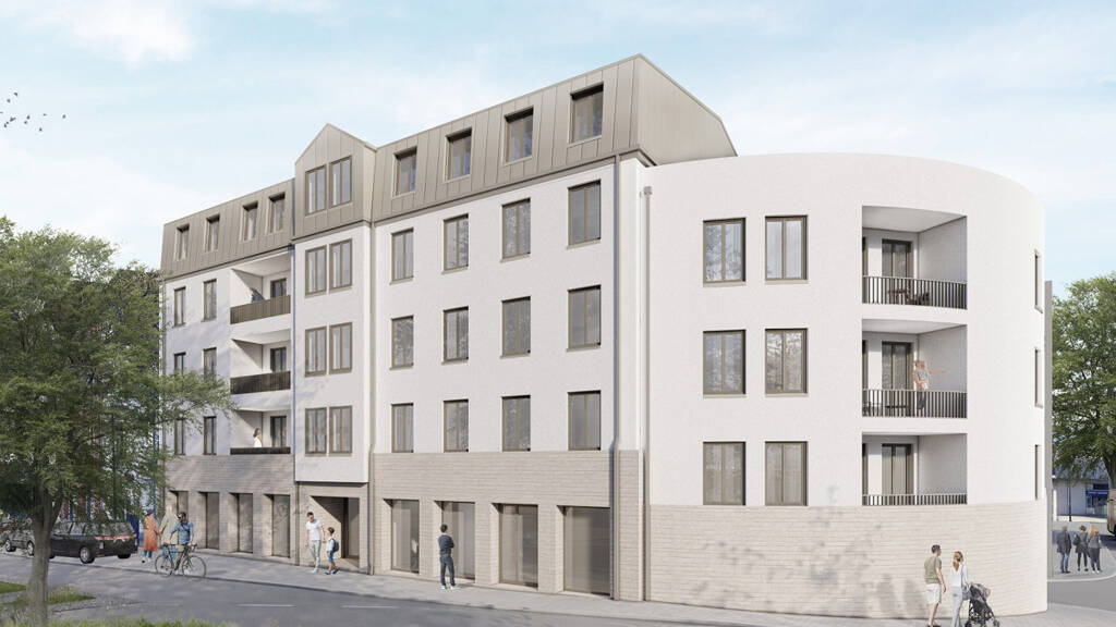 Durch die Zusammenarbeit von der Firma "faberhaus" und dem Architekturbüro "m+r plan" entsteht auf dem Gelände des ehemaligen "Köster-Hauses" ein moderner Neubau. Das seit über 20 Jahren leerstehende Gebäude wird dafür zurückgebaut und durch 17 Wohnungen sowie Geschäftsräume im Erdgeschoss ersetzt.