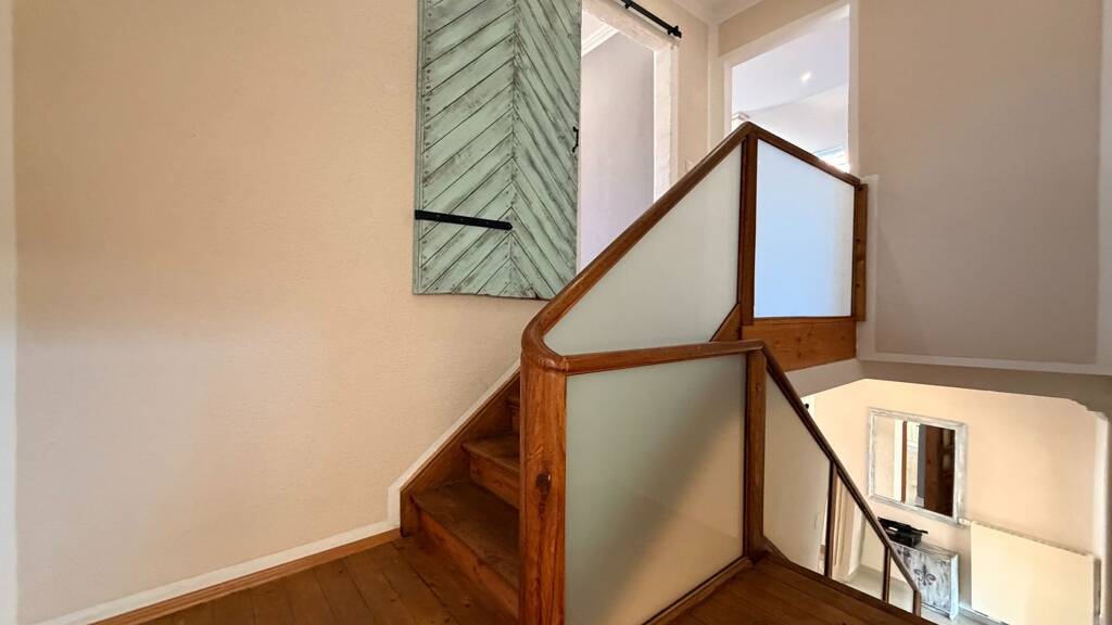 Nüchtern pragmatisch auf der einen Seite, idyllisch gemütlich auf der anderen Seite, der Sonne und dem gemütlichen Ortskern zugewandt, zeigt sich ein ganz besonderes Haus für Paare, Singles oder auch für die kleine Patchwork - Family mit westfälischem Fachwerkhauscharakter. Praktischerweise gleich zwei Eingänge ermöglichen Zutritt, einmal von der lebhaften Durchgangsstraße und von der hübschen idyllischen Fußgängerzone . Das Erdgeschoß verfügt über eine geräumige Wohnküche, neben einem modernen Gäste-WC ist ein helles Wohnzimmer vorhanden, das durch die Galerie im 1. Geschoß und wegen der Süd-West -Ausrichtung lichtdurchflutet ist. Im Obergeschoß liegt ein großes Schlafzimmer und eine beindruckendes Wellness-Bad für Komfortverwöhnte. Der Galeriebereich bietet ein weiteres Zimmer und direkten Zugang zum Balkon mit Süd-West -Ausrichtung. Genügend Stauraum bieten der ausgebaute Spitzboden und ein geräumiger Teilkeller. Ein Stellplatz liegt direkt am Haus, eine Freistellung ist kurzfristig möglich.
