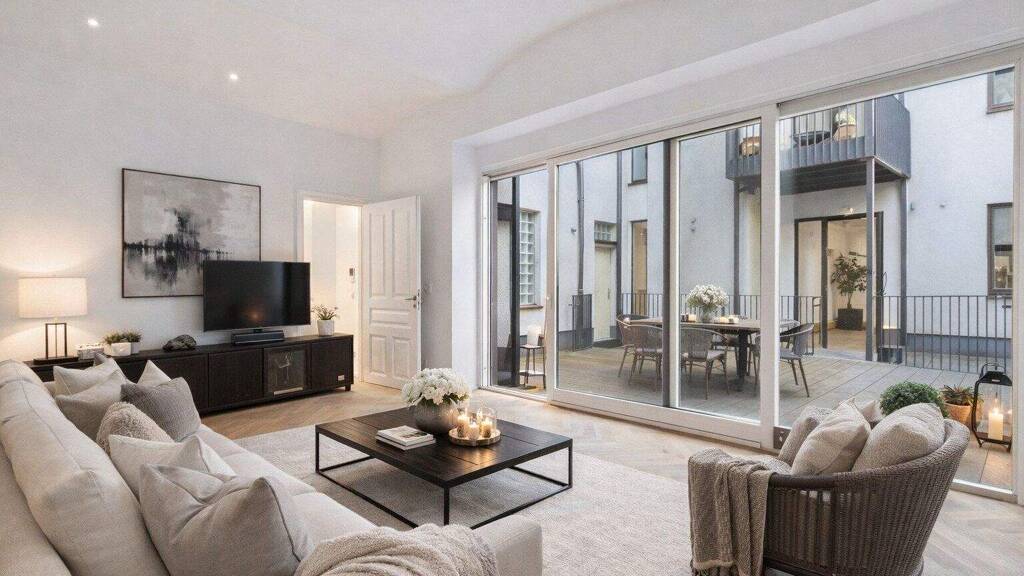 Diese außergewöhnlich großzügige Altbauwohnung bietet ein Wohngefühl, das man in der Stadt nur selten findet. Mit fast 100 m² Wohnfläche und einer beeindruckenden Terrasse von rund 43 m² verbindet die Wohnung den klassischen Charme eines historischen Hauses mit dem Komfort moderner Raumgestaltung.
