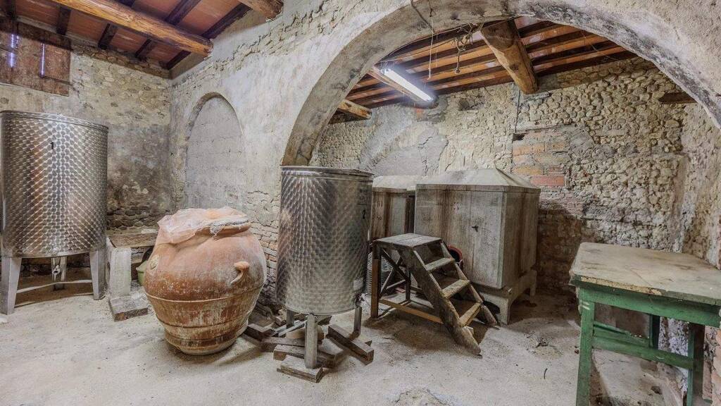 Dieses ländlich gelegene Bauernhaus befindet sich in einer äußerst panoramischen Lage, eingebettet in die typisch toskanischen Hügel und umgeben von einer reizvollen Naturlandschaft. Trotz der ruhigen Umgebung ist die Immobilie gut angebunden: Die Straße mit sämtlichen Annehmlichkeiten befindet sich in unmittelbarer Nähe, und eine Bushaltestelle liegt direkt vor dem Grundstück. Das Anwesen ist somit nicht isoliert und grenzt an weitere Grundstücke, wodurch eine angenehme Balance zwischen Privatsphäre und Erreichbarkeit entsteht. Das Bauernhaus erstreckt sich über drei Stockwerke und präsentiert sich im klassischen rustikalen Stil mit charakteristischen Sichtsteinmauern, die den authentischen toskanischen Charme unterstreichen. Das Gebäude befindet sich in unterschiedlichem Ausbaustadium: Ein Teil ist bereits bewohnbar, ein weiterer Teil befindet sich im Rohbauzustand, während ein Bereich aktuell als Ruine einzustufen ist und umfassender Sanierung bedarf. Der Eigentümer begann im Jahr 1993 mit der Renovierung des Anwesens, musste die Arbeiten jedoch einstellen. In diesem Zuge wurden das Dach sowie die Dachböden im selben Jahr vollständig erneuert – eine wichtige bauliche Grundlage für die weitere Entwicklung der Immobilie. Dieses Bauernhaus bietet somit großes Potenzial für Liebhaber traditioneller toskanischer Architektur oder für Investoren, die ein authentisches Anwesen in hervorragender Panoramalage fertigstellen und nach eigenen Vorstellungen gestalten möchten.