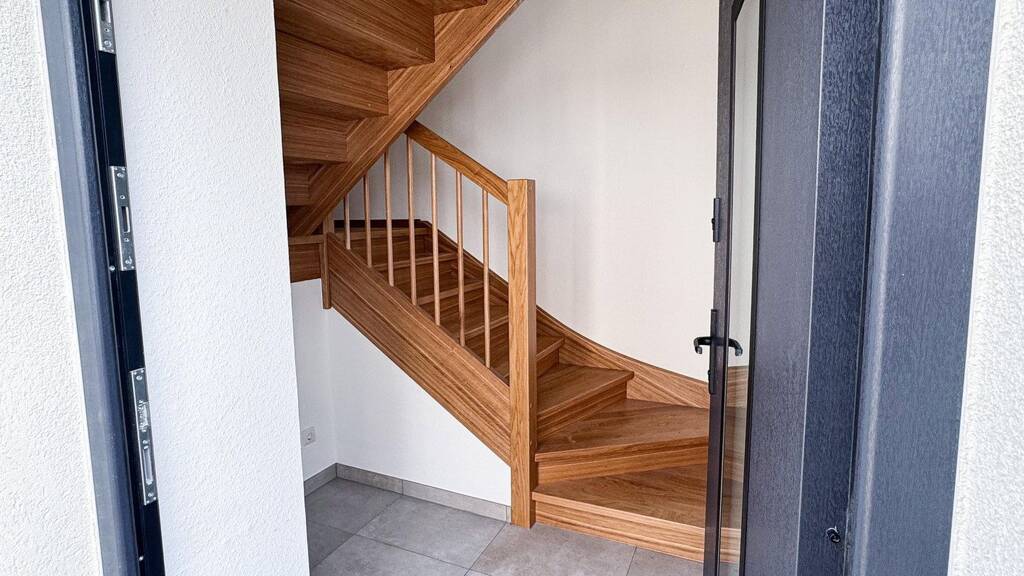 Die Wohnung erstreckt sich über das 1. Obergeschoss und das ausgebaute Dachgeschoss. Zwei Zimmer befinden sich im 1. OG und verfügen über maßgefertigte Einbauschränke unter den Dachschrägen, die zusätzliche Nutzfläche schaffen. Ein weiteres, großzügiges Zimmer liegt im Dachgeschoss und eignet sich ideal als Wohnzimmer, Büro oder Rückzugsort.