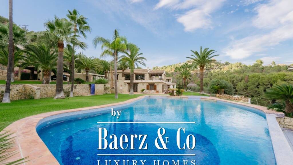this unique finca combines the luxury of modern amenities with an authentic and rustic atmosphere thanks to the many wooden beams, natural stone walls and terracotta floor tiles. situated in the charming coastal town of benissa, on a domain of more than 27.000 m2 with panoramic sea views and complete privacy.